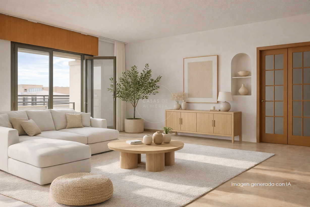 Dispone de un gran salón muy luminoso, con salida a una terraza con vistas despejadas a la plaza, ideal para disfrutar del exterior y de la orientación sur durante todo el año.